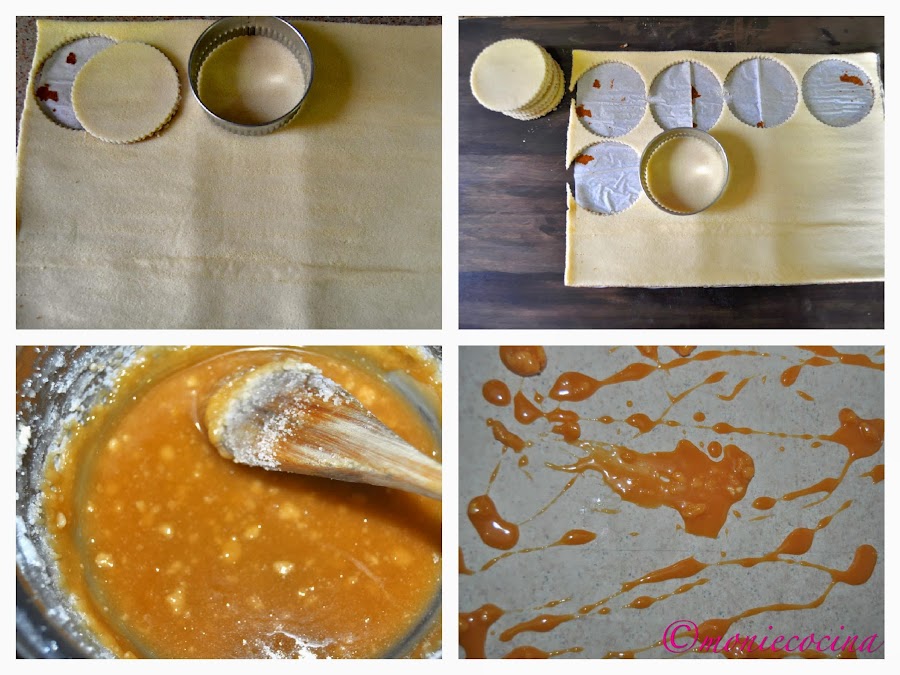 Cortamos el bizcocho en 5 partes, yo elegí un cortapastas redondo porque hice dos mini tartas.