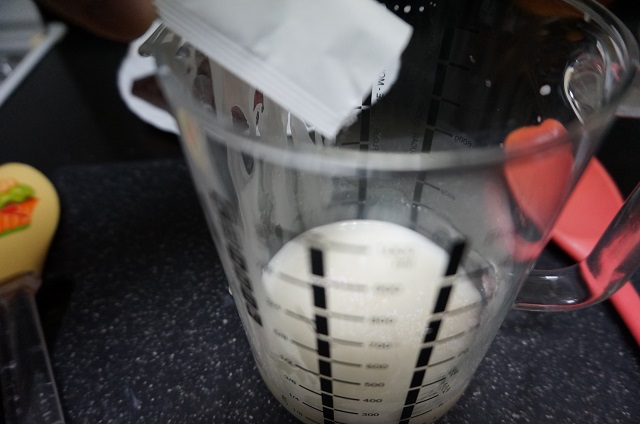 Por otro lado disolvemos en 200ml. de leche un sobre de cuajada cuando esté bien disuelta sin grumos lo echaremos al cazo del chocolate, lo tendremos removiendo hasta que empiece a espesarse, lo retiramos del fuego. No tiene que hervir.