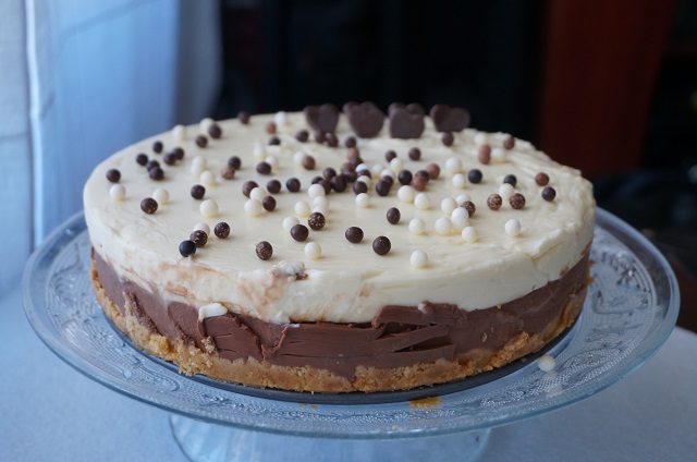 Hoy os propongo una tarta dos chocolates sin horno, una tarta riquísima donde los chocolateros podemos disfrutar de esta delicia.