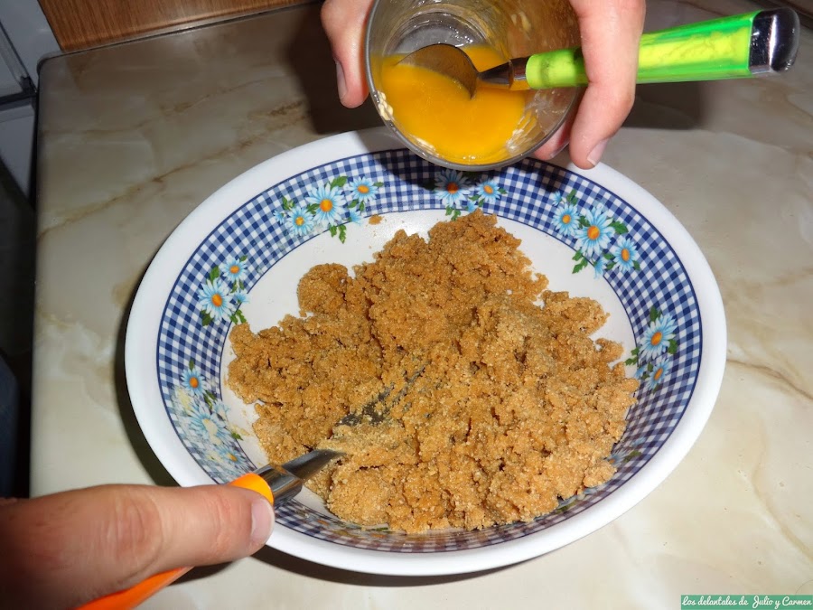 Trituraremos las galletas hasta dejarlas como polvo. Derretiremos la mantequilla y, poco a poco, iremos vertiéndola sobre las galletas. Os aconsejo que lo hagáis poco a poco, ya que si nos pasamos y echamos mas de la cuenta, quedará demasiado grasiento. Removeremos con una cuchara y cuando veamos que tenemos una masa compacta, dejamos de verter mantequilla.