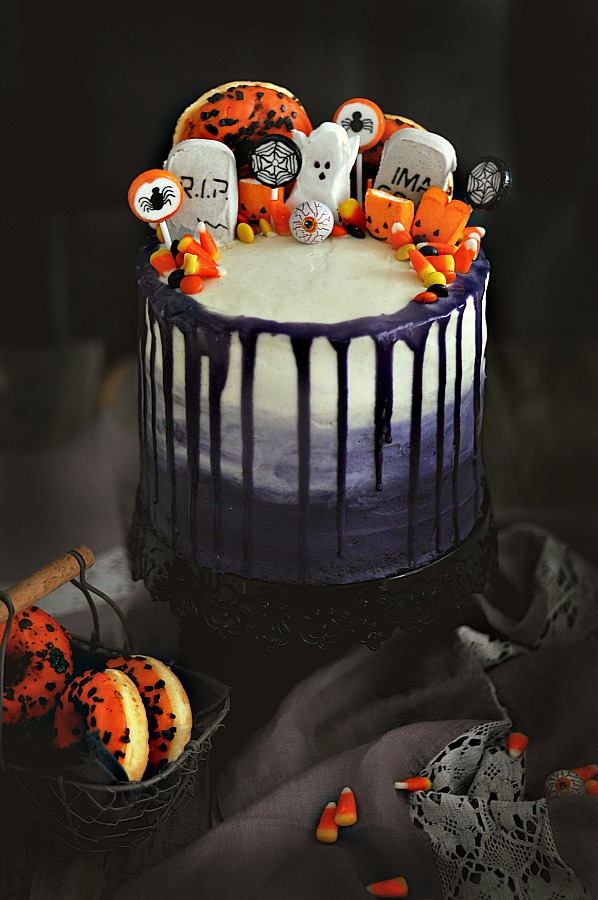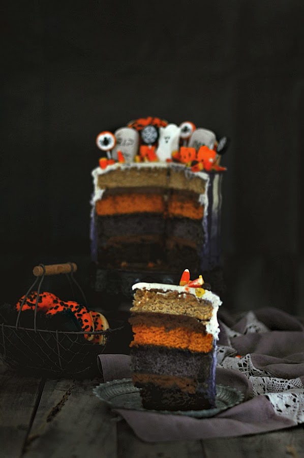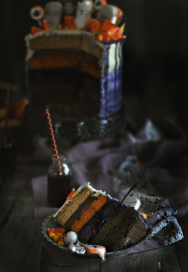 Yo hoy comparto una drip cake con motivos de Halloween, que es realmente deliciosa, sobre todo el bizcocho de calabaza que me recuerda mucho, imagino que por la combinación de especias, al bizcocho de zanahoria. No es difícil pero sí, lleva un poco de trabajo porque hay muchos pasos a seguir. Organizándose bien podrá hacer una divertida y colorida drip cake para Halloween, sin agobios.