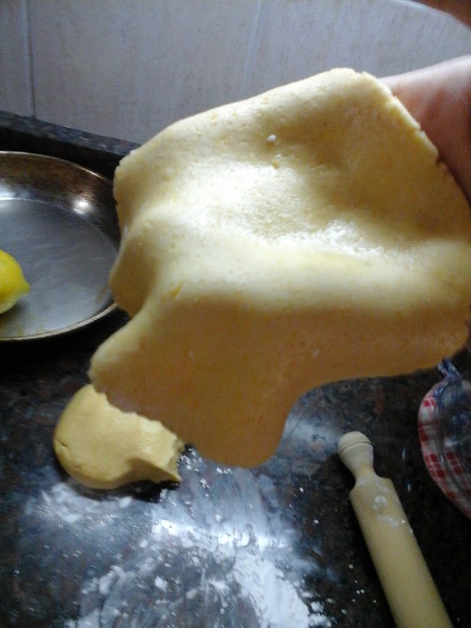 Para preparar la masa basta sólo con unir todos los ingredientes, pero preferentemente primero sobre el azúcar poner la ralladura de limón para que ésta absorba el sabor mejor que si agregamos la ralladura en otro momento. Luego añadir el resto de los ingredientes excepto la leche, de leche agregar sólo lo que haga falta con cuidado de no agregar de más ni de menos y amasar. Muchas veces no necesitará nada de leche, depende del tamaño del huevo. Debe quedar una masa semi elástica* pero no debe pegarse nada en las manos. Si la masa se nota demasiado quebradiza con agregarle un poquito de líquido debería volverse un poco más elástica pero que nunca se pegue en las manos. Si la masa se pega en las manos agregarle un poco de almidón de maíz y amasar hasta lograr la consistencia deseada.