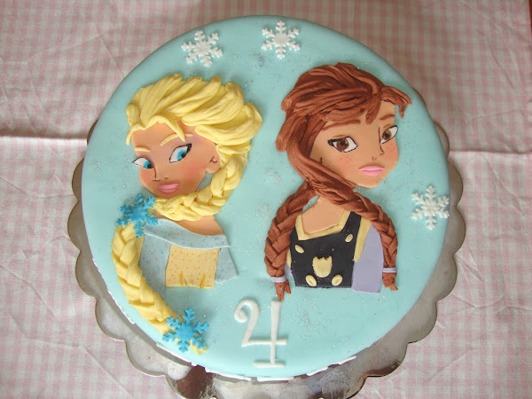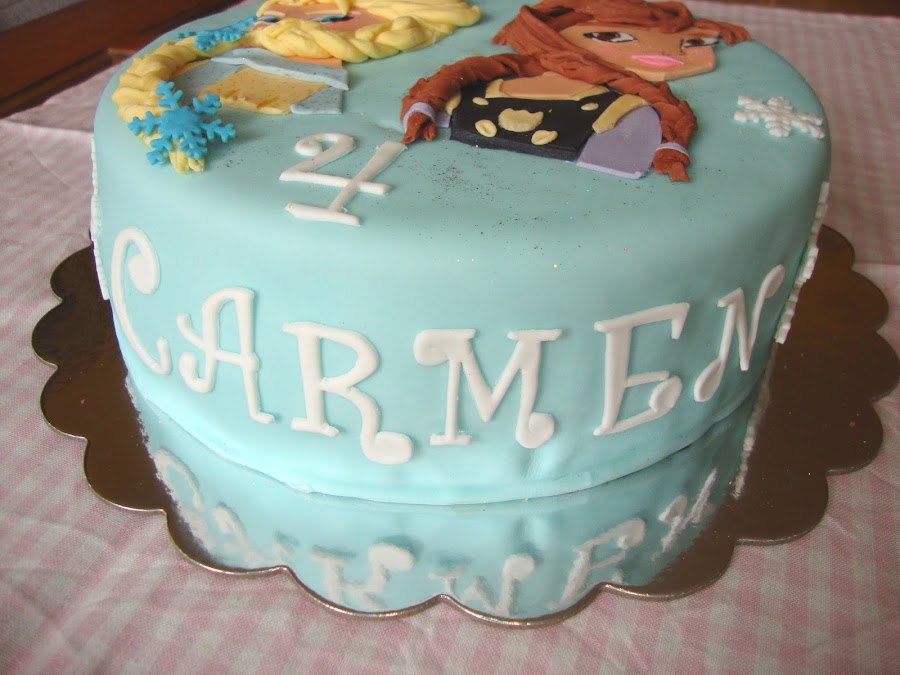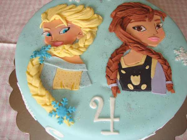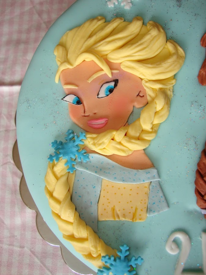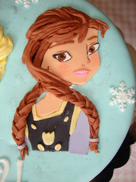 La decoración está realizada con fondant, rotuladores y purpurina comestible.