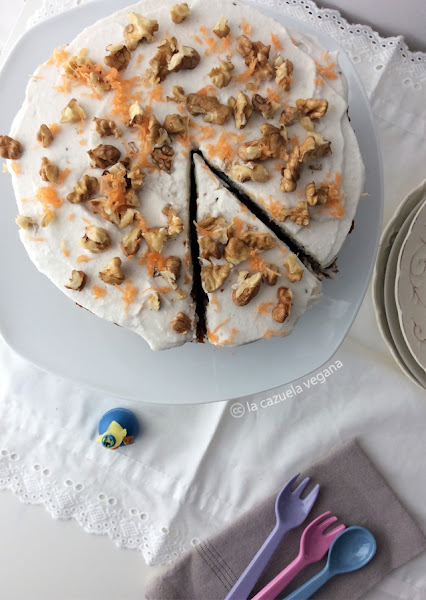 Vegan Carrot Cake. Tarta de cumpleaños vegana .Tarta especiada de zanahoria y nata (crema de leche) de coco