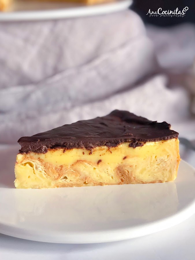 Una vez este, añadimos el flan al molde, por encima de los croissants, y dejamos enfriar unos 30 minutos. Después lo metemos en el frigorífico y dejamos enfriar 3-4 horas para que el flan cuaje bien.
