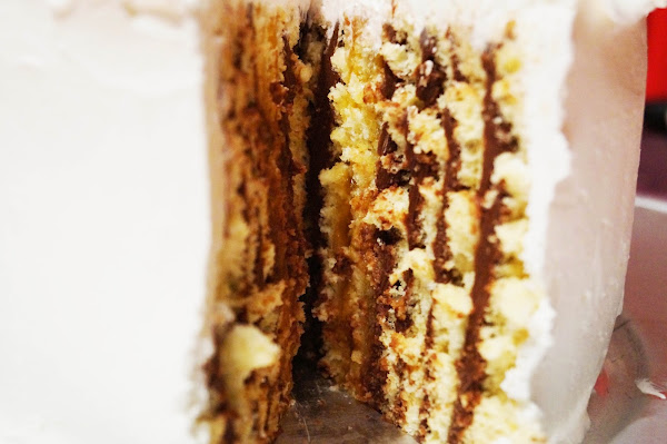 Para esta tarta con este diámetro hice dos masas de bizcocho genovés, da muy buenos resultados.