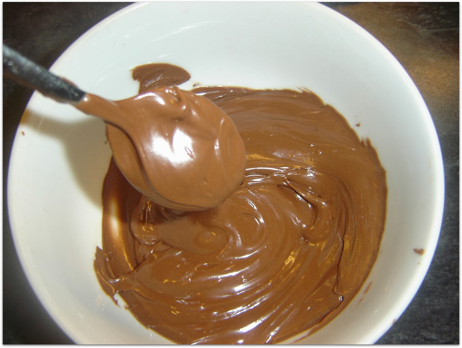 Vertemos en un bol la crema de cacao que deseemos al gusto. En mi caso utilicé unos 150 gramos. Le damos un toque e microondas para poder trabajar mejor la crema. Con unos segundos es suficiente. ¡no se os vaya a quemar!