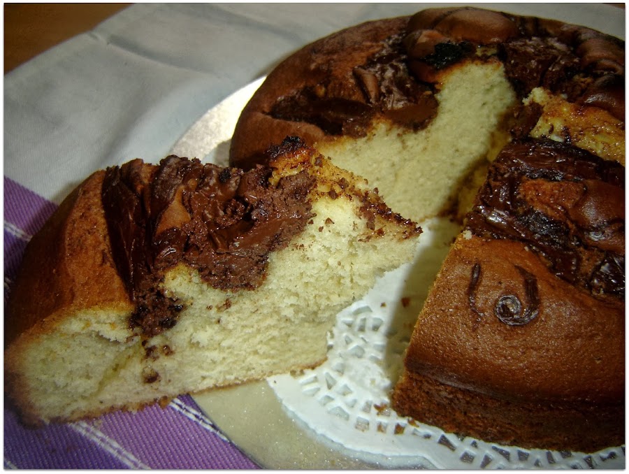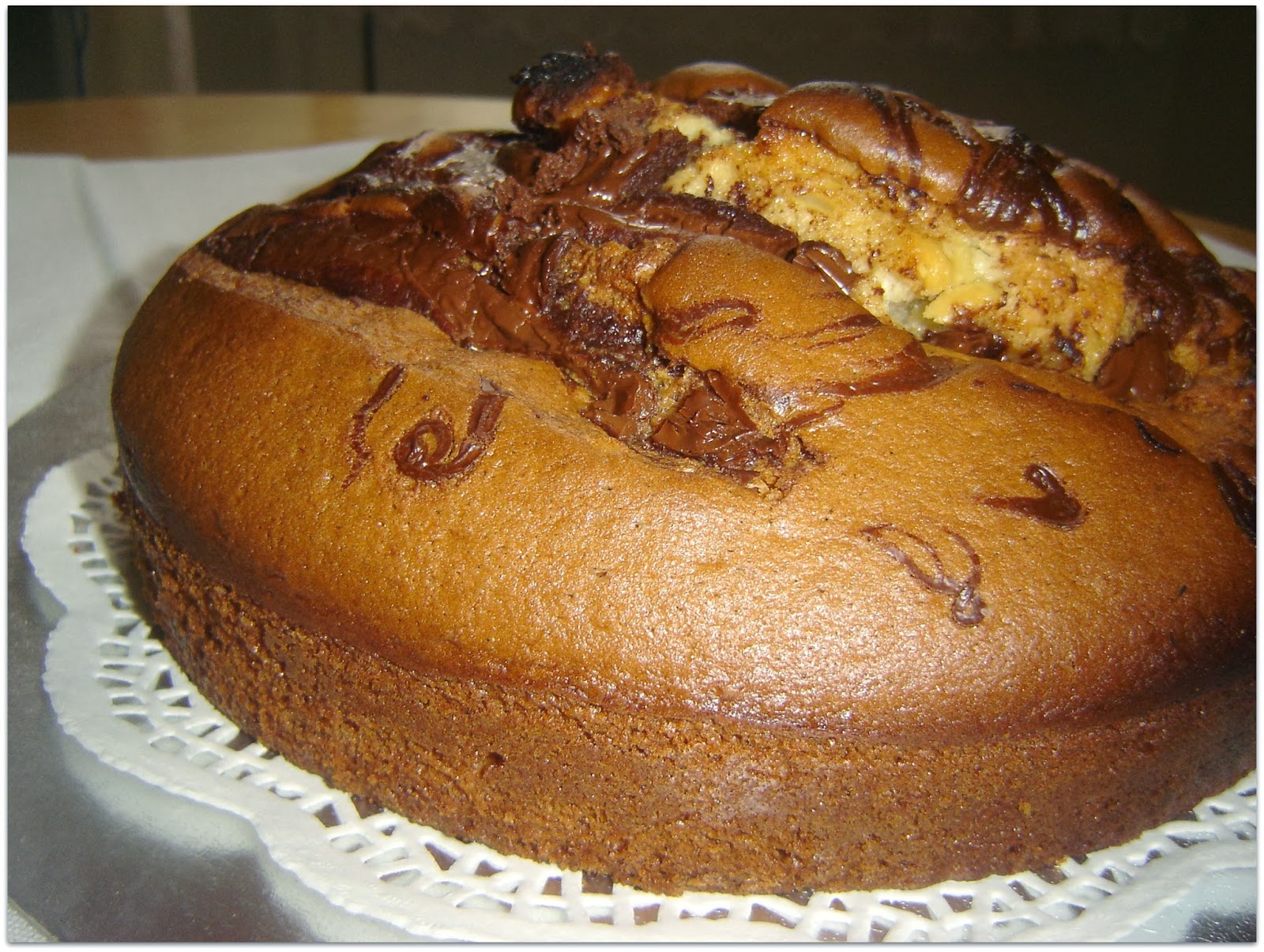 Hace unos años recuerdo que en un supermercado se celebraba la semana internacional y ví una tarta parecida en la sección de Italia y la compré para dar una sorpresa de cumpleaños. Estaba deliciosa! Hace unos días encontré una receta que me recordaba a esa que compré y no hay duda de que era la misma! Podéis usar la crema de cacao que más os guste. En mi caso utilicé Nutella porque aqui en el extranjero es de las más comunes y porque ya conocía bien su sabor en nuestro país. Y porque no puedo resistirme...para qué mentir jeje.