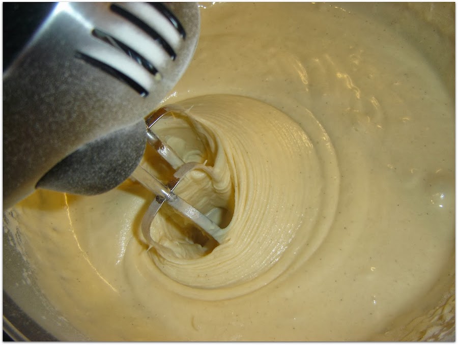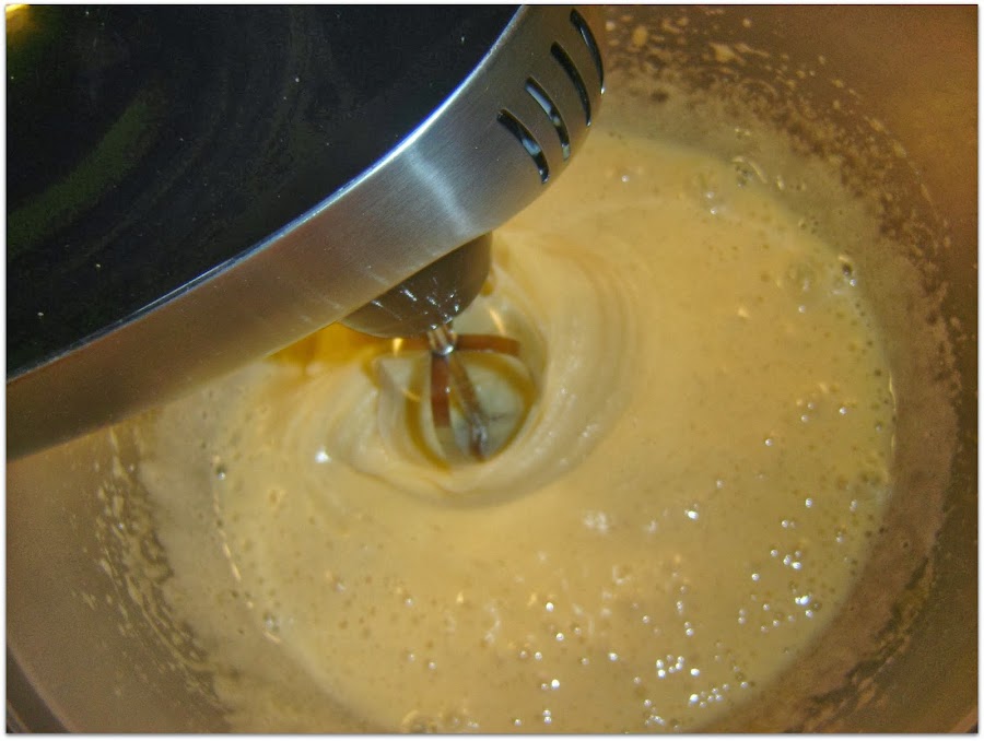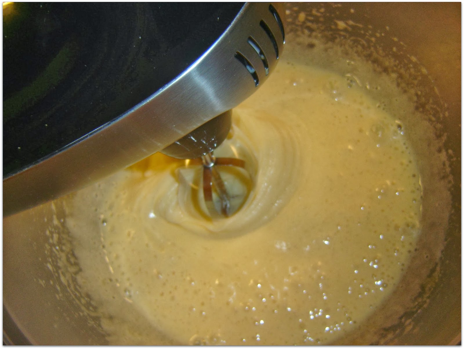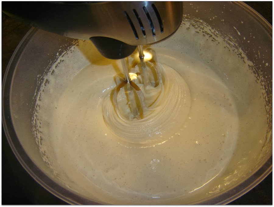 Batimos a mano o con varillas. Os recomiendo las varillas para que os salga más uniforme y nos espumee más. Prácticamente queda montado. Batimos unos 5 minutos.