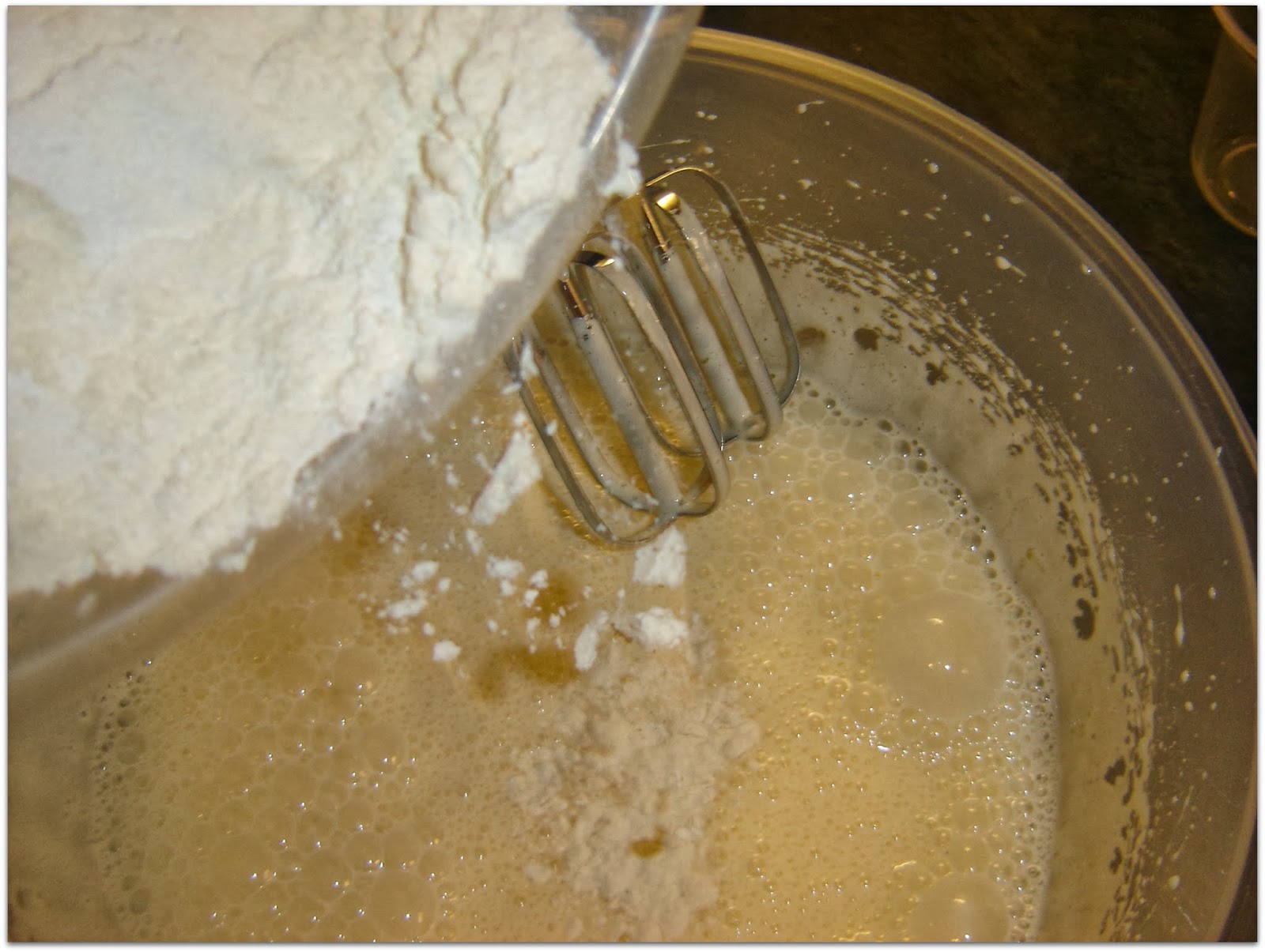 Por último, le agregamos la harina con la levadura, previamente tamizadas. Nunca de un solo golpe, progresivamente.