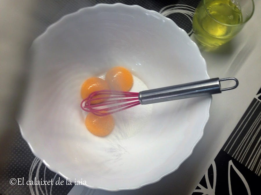 cuando estén calientes, añadiremos poco a poco las yemas blanqueadas