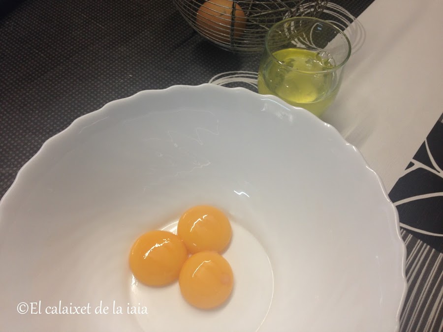 Mientras tanto, separaremos las yemas de las claras, que aprovecharemos para otro guiso y que podemos congelar si no las vamos a usar de inmediato.