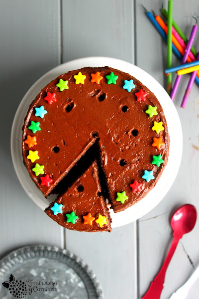 En cuanto a la receta de hoy, que forma parte del estupendo libro de Bea que entra en el sorteo, pues deciros que es la tarta de cumpleaños más fácil, mezclamos todos los ingredientes a la vez, horneamos y cubrimos con un frosting que está buenísimo. Yo no soy de las que el día de su cumpleaños se mete en la cocina, aprovecho y lo disfruto, pero con una tarta tan tan fácil y tan rica como esta la próxima vez me lo voy a pensar dos veces ;)