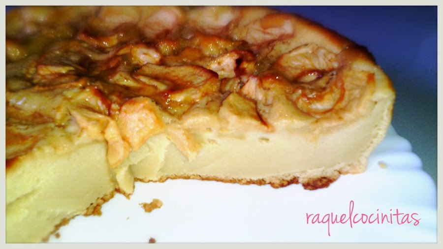 Una vez que lo tengamos todo, lo vertemos en el molde. Pelar la otra manzana e ir colocandola en rodajitas por la parte de encima. La masa me quedo muy liquida y pense que se iban a hundir, pero no.