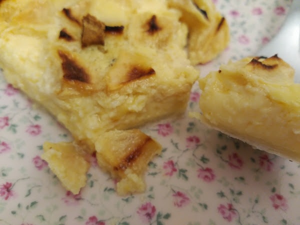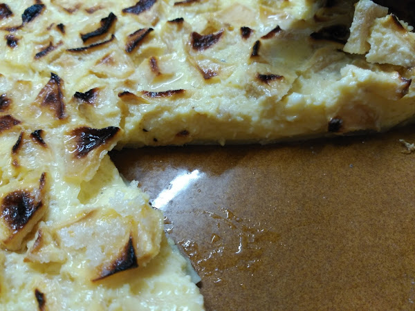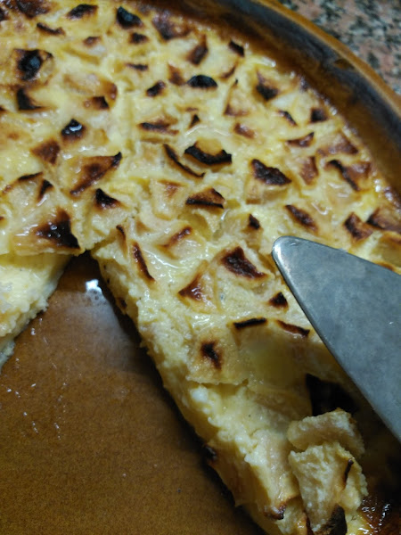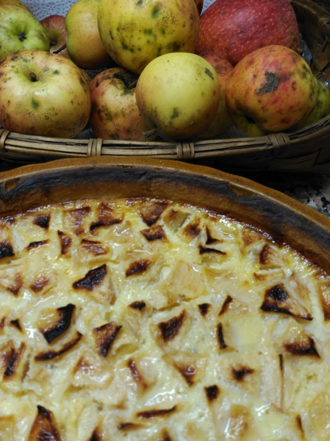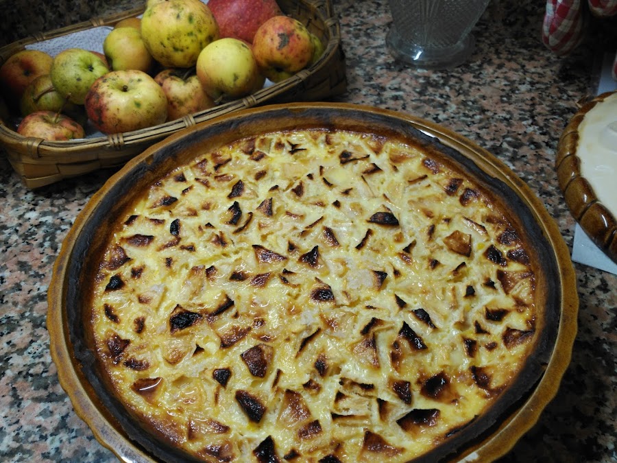 Es una tarta muy rica, con textura de flan, los trozos de manzana le dan un sabor maravilloso y a pesar de la leche condensada no es demasiado dulce.