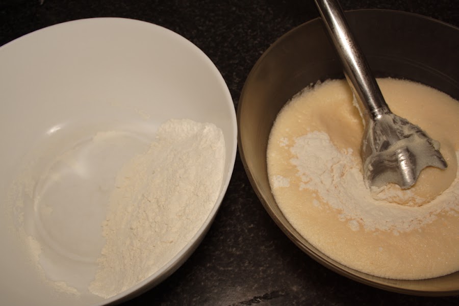 En otro bol batimos el azúcar con la mantequilla hasta que quede una crema y reservamos.