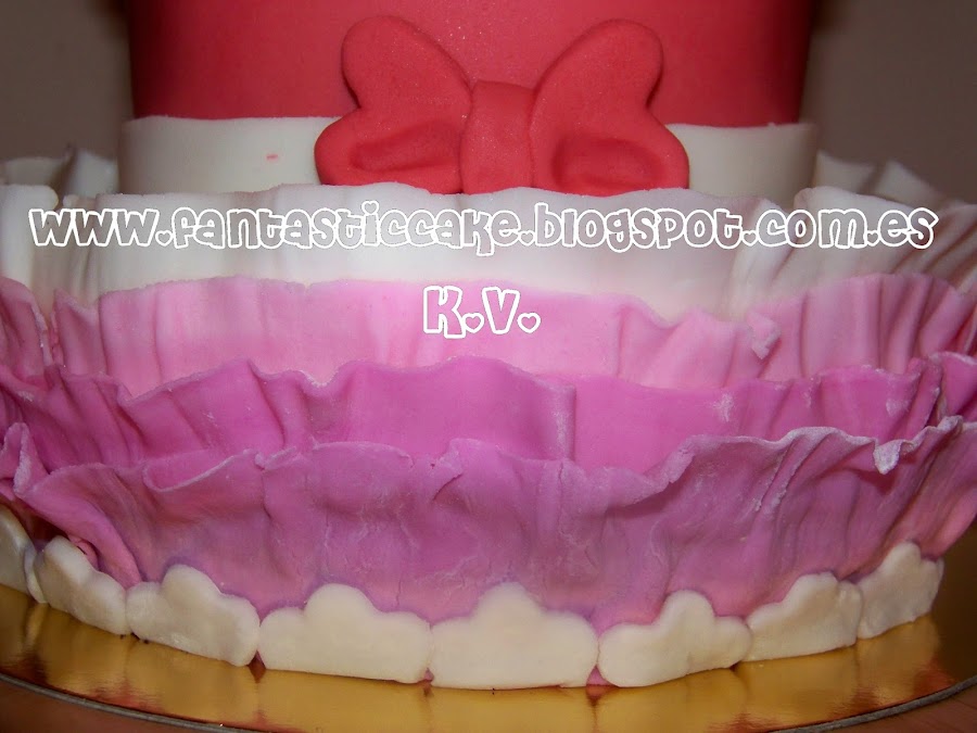 Como no teníamos ningún diseño en concreto, fuimos trabajando la tarta sobre la marcha, lo que se nos fuera ocurriendo lo ibamos haciendo y fue quedando muy bonita, además de original.