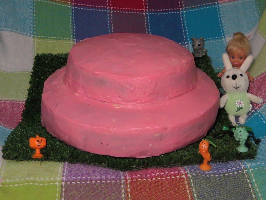 Untáis los dos bizcochos con la mezcla, daros cuenta que en este paso tardaréis un buen rato para que os quede bien, pero merece la pena sobre todo si tenéis peques en casa. Adornáis con nata (crema de leche) para montar y ya está listo para servir.