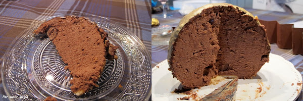 Verter la cobertura de chocolate por toda la parte superior de la esfera, de manera que vaya resbalando hacia la parte inferior y quede toda cubierta. OJO: al estar la esfera fría, el chocolate endurece con una cierta rapidez, así que no descuidaros.