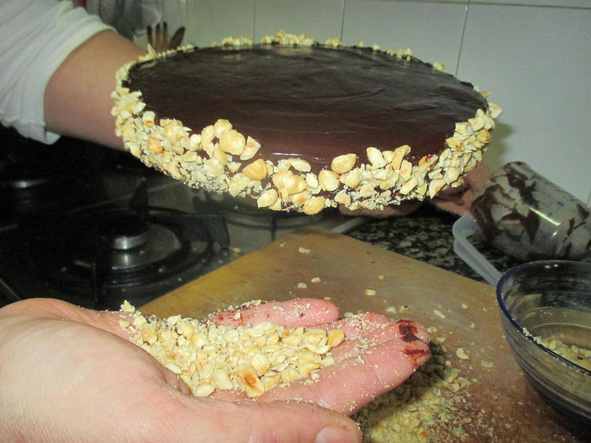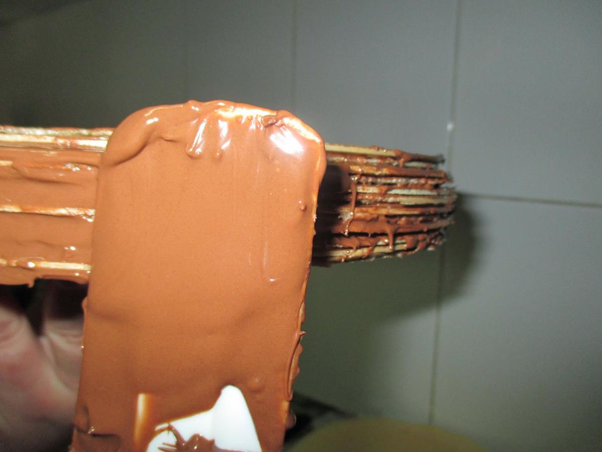Una vez puestas todas las capas que queramos, cubrimos el borde de Nutella.