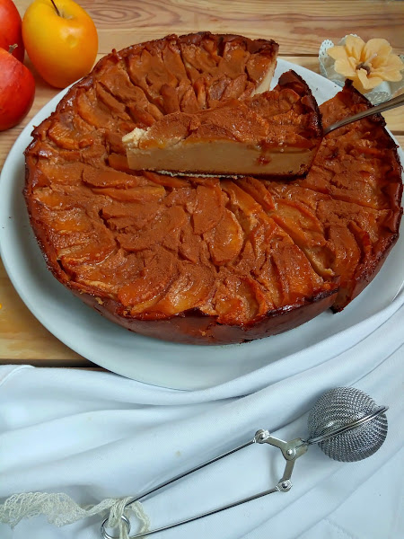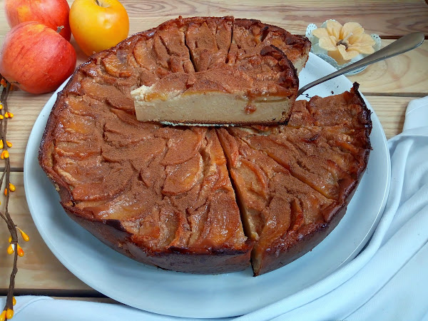 Si la manzana se dora podemos tapar la tarta con un papel de aluminio para evitar que se queme mientras termina de cuajarse la tarta.