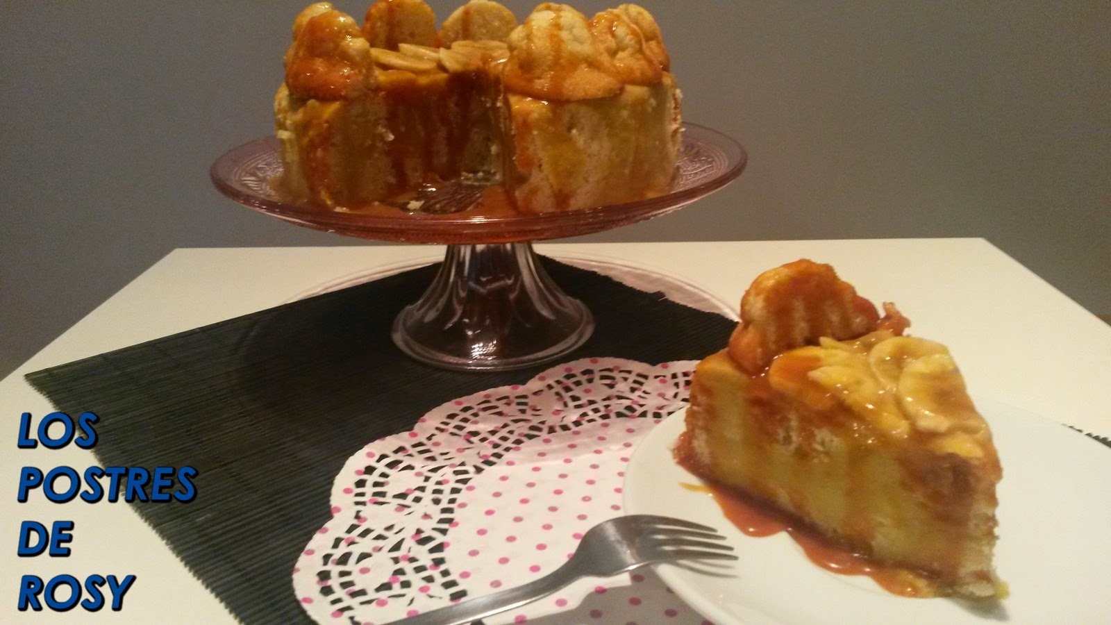 - Cuando esté bien frío y sólido, decoramos con el plátano que habíamos reservado, el toffee (caramelo, leche condensada, chocolate, sirope....) y los copetes de las magdalenas.