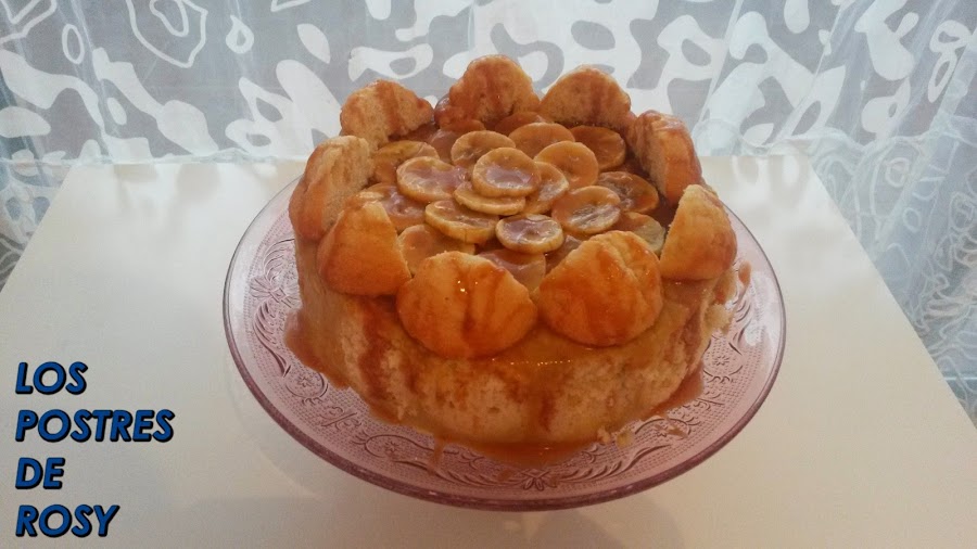 - Cubrimos el molde con las magdalenas (yo las he abierto a la mitad y he dejado algunos de los "copetes" para la decoración, pero si no os apetece, no pasa nada, queda igual de rico con las magdalenas enteras).