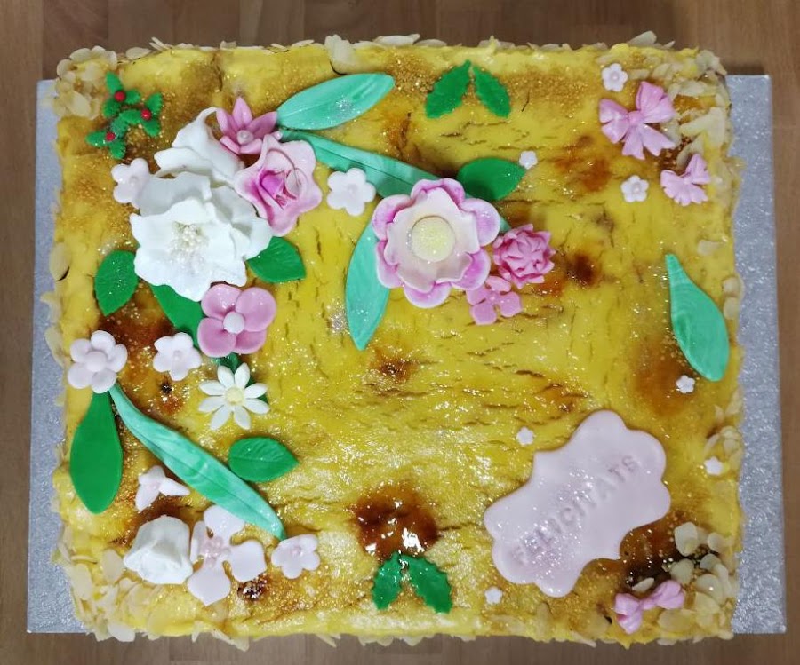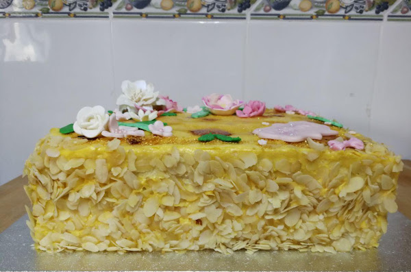 Tarta para una abuela que cumplía 90 años, y que mejor decoración que unas flores.
