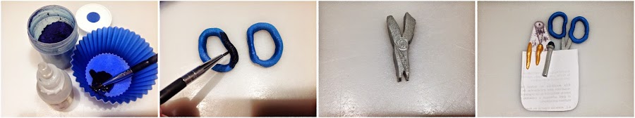 Quise darle un color más intenso a las tijeras, (también ayuda a disimular imperfecciones del fondant) y las pinté de azul oscuro.
