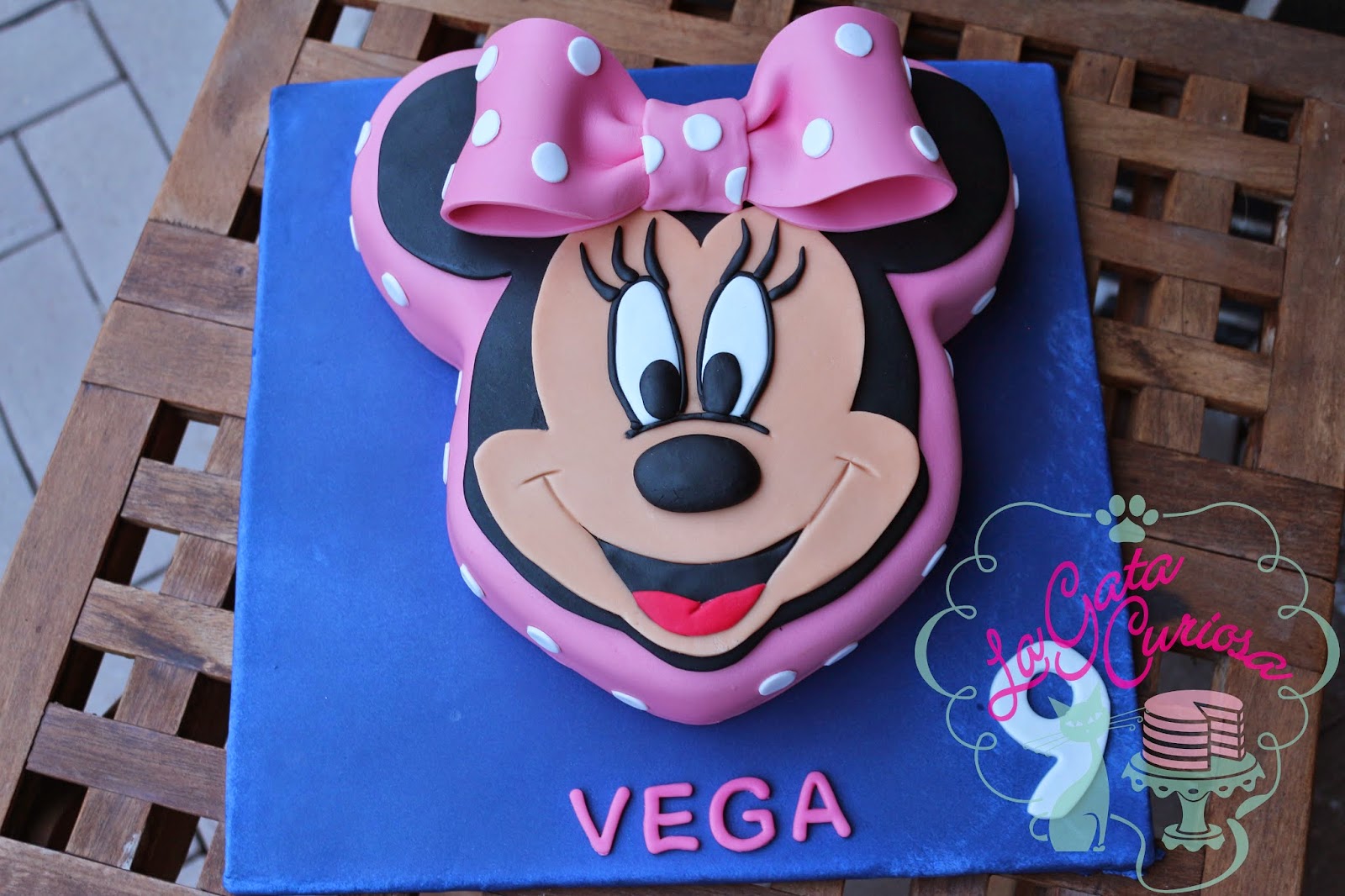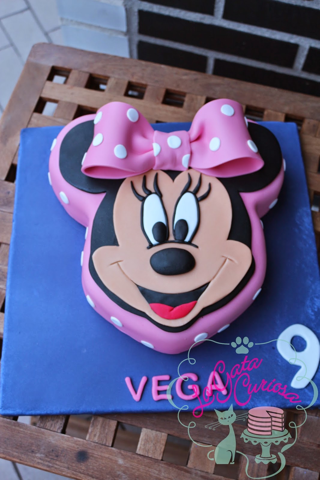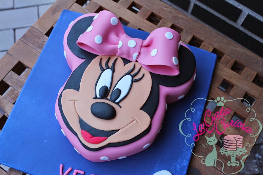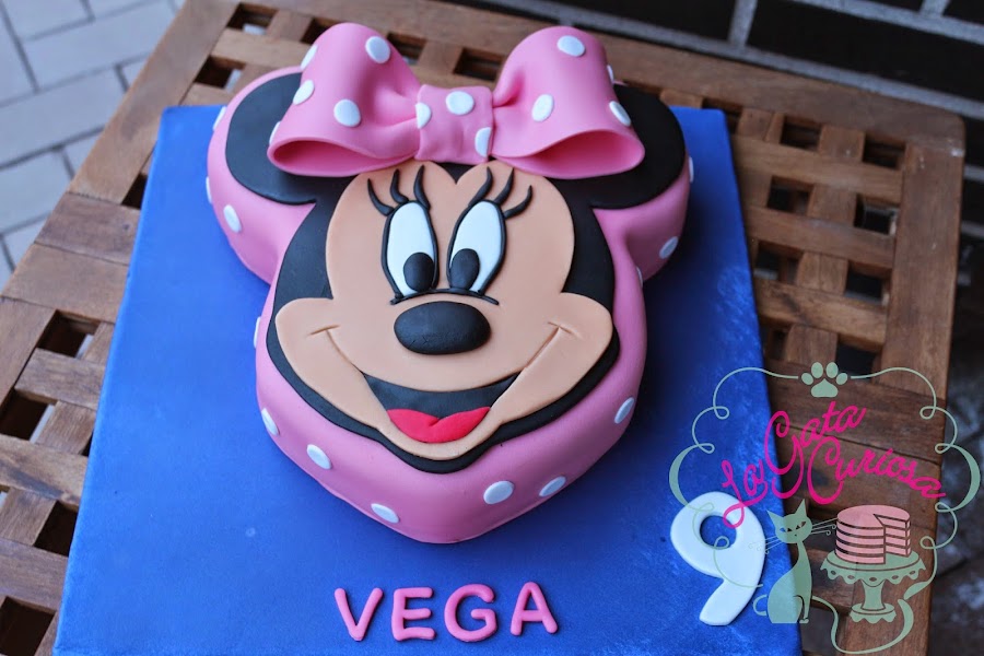 Esta es nuestra segunda tarta de Minnie con la forma de la cabeza, en esta ocasión era para Vega que cumplía 9 años y el encargo nos lo hizo su prima Victoria.Bizcocho de vainilla rosa relleno de buttercream de Nutella.