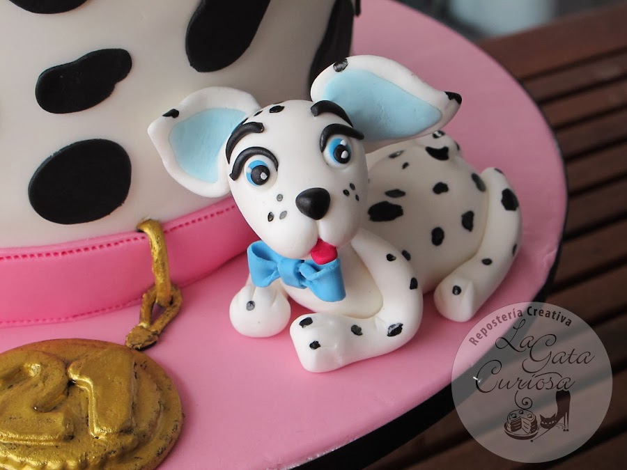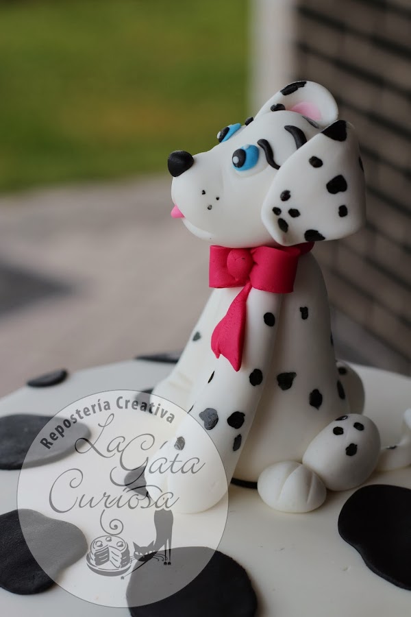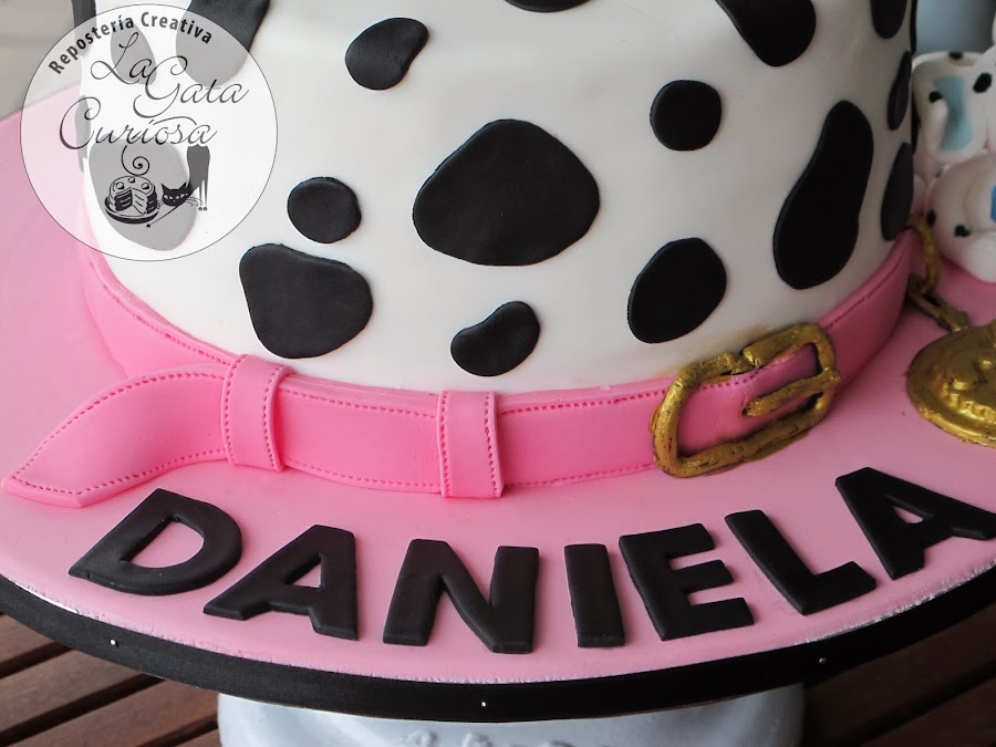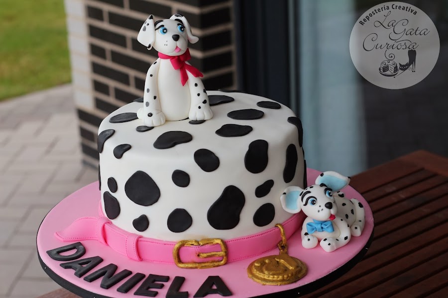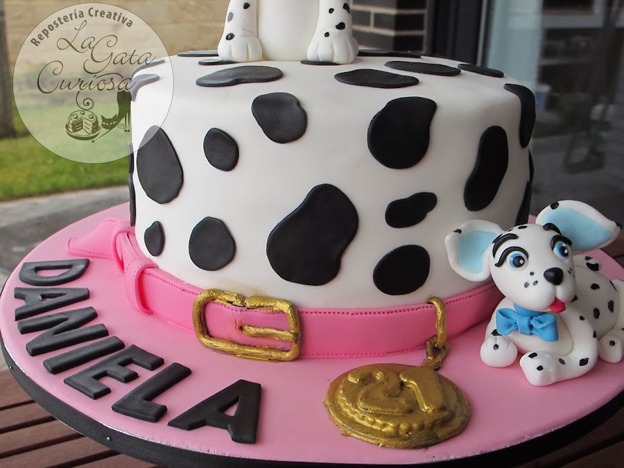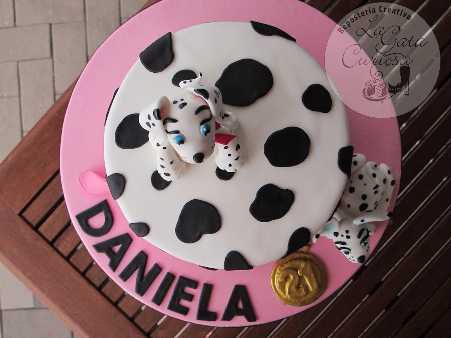 Daniela cumplió 21 años hace unos días, su madre nos comentó que le gustaban mucho los perros, y que lo que le habría gustado para su cumple habría sido un perrito, pero el caso es que ya tienen 3, además tienen también varios gatos, por lo que su madre pensó que como también le gustan las películas de Disney una tarta de Dálmatas seguro que le gustaría, yo creo que quedó muy bonita, seguro que se puede hacer mucho mejor pero yo estoy muy contenta con el resultado.