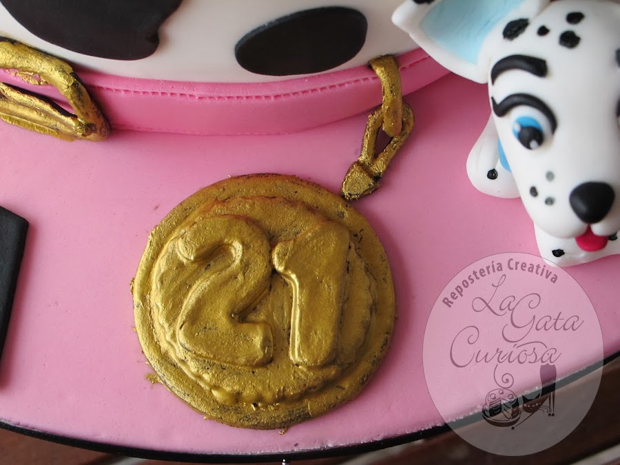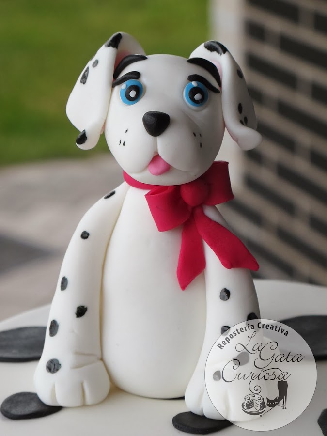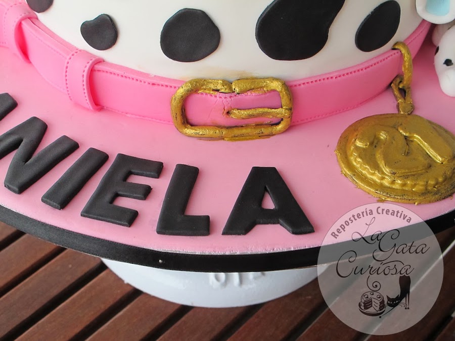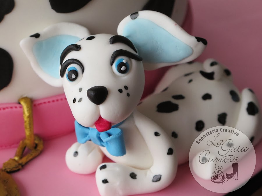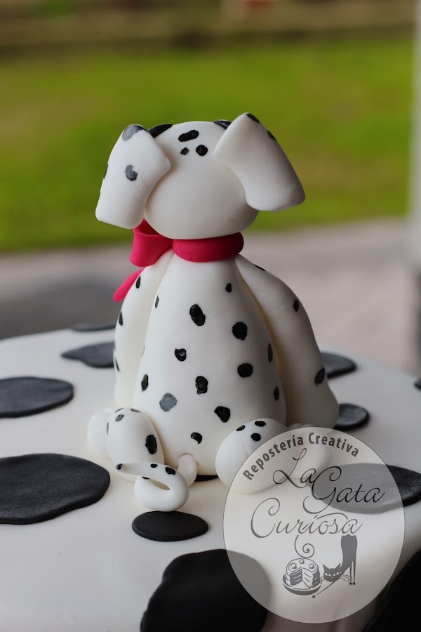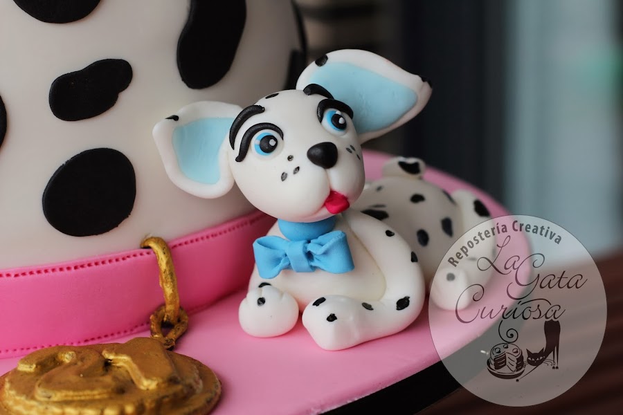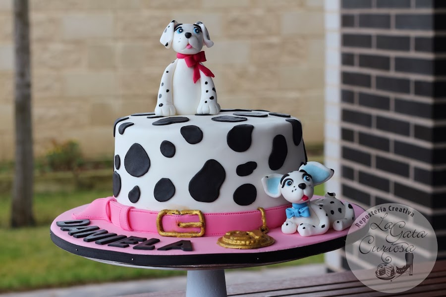 Daniela cumplió 21 años hace unos días, su madre nos comentó que le gustaban mucho los perros, y que lo que le habría gustado para su cumple habría sido un perrito, pero el caso es que ya tienen 3, además tienen también varios gatos, por lo que su madre pensó que como también le gustan las películas de Disney una tarta de Dálmatas seguro que le gustaría, yo creo que quedó muy bonita, seguro que se puede hacer mucho mejor pero yo estoy muy contenta con el resultado.