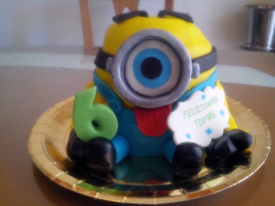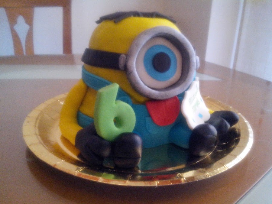 Hola!!! Como ya sabeis ultimamente me esta dando por hacer las tartas en 3D, vamos que estoy intentando modelar los bizcochos para hacerlas. Es una tecnica complicada porque no es facil modelar algo tan blando como un bizcocho y ademas super relleno como lo relleno yo,jajaja. Pero bueno van saliendo poco a poco. Aqui os dejo la ultima tarta que me han encargado. La mama Inma ha confiado en mi otro año mas para un dia especial, el cumpleaños de Tomás. Este año me la pidieron una tarta de un minion. A si que dicho y hecho una tarta de minion con bizcocho sin lactosa rellena de crema de chocolate sin lactosa tambien. Espero que les guste y que disfrute de este dia tan especial para el. ¡¡¡¡FELICIDADES!!!!