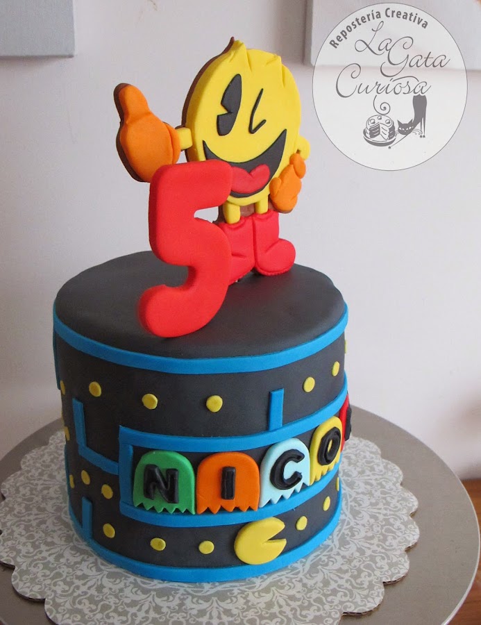 Sinceramente cuando me encargaron la tarta no sabía no que era Pac man y cuando me dijeron que eran los comecocos de siempre me hizo mucha ilusión, recuerdo los comecocos de cuando era joven, fue uno de los primeros juegos a los que jugué en una maquinita, luego vino el tetris que siempre ha sido mi juego favorito.