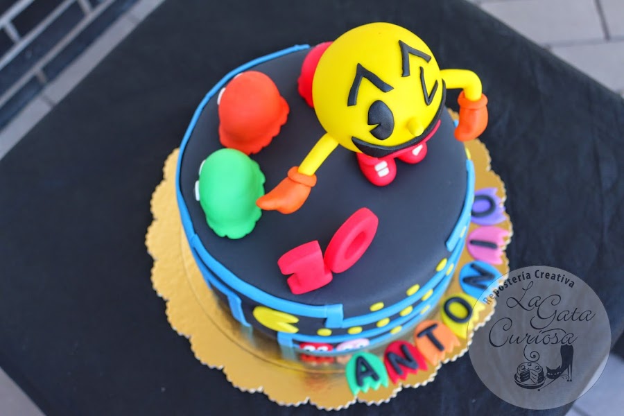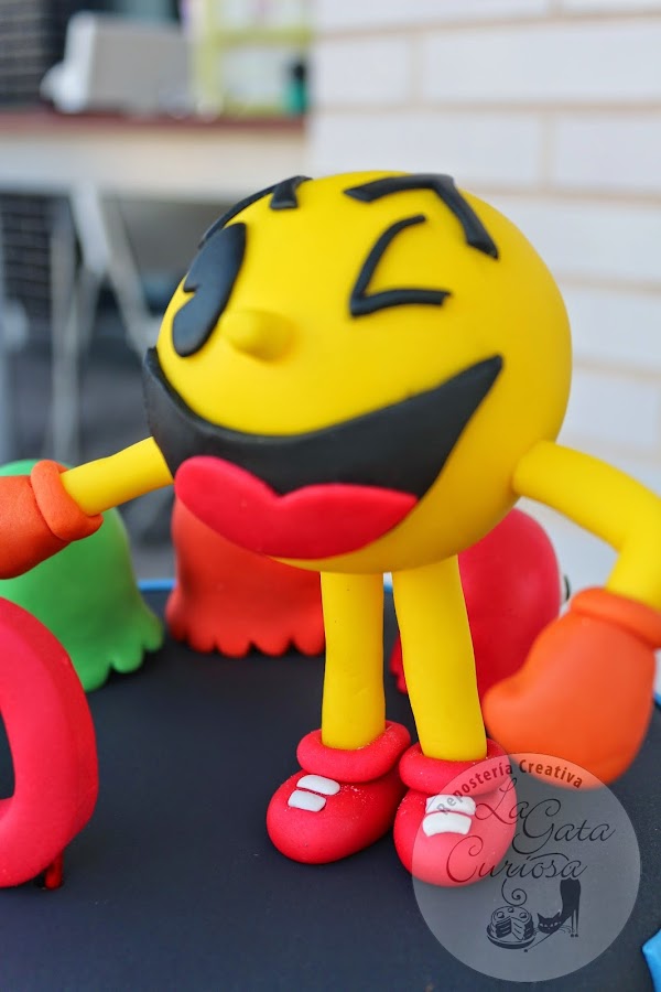 Desvelado el misterio los pies de la foto que os enseñé por el Facebook corresponden a Pacman, hasta ahora habíamos hecho dos tartas más de Pacman pero las dos habían sido en 2D, para el cumpleaños de Antonio sus padres pensaron que dado que ya es todo un hombrecito una tarta con Pacman en 3D le podría gustar. Hemos incluido en la tarta 3 fantasmitas en 3D también para que su hermano y sus primos tuviesen un detallito.