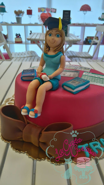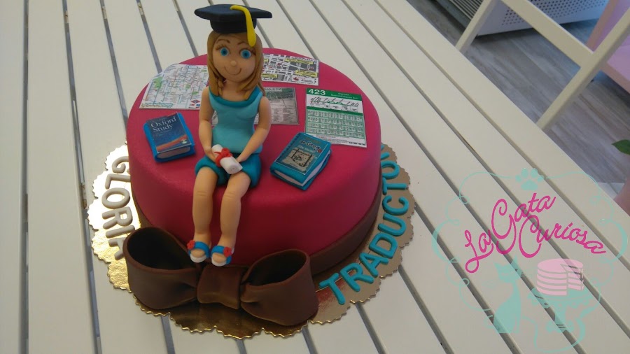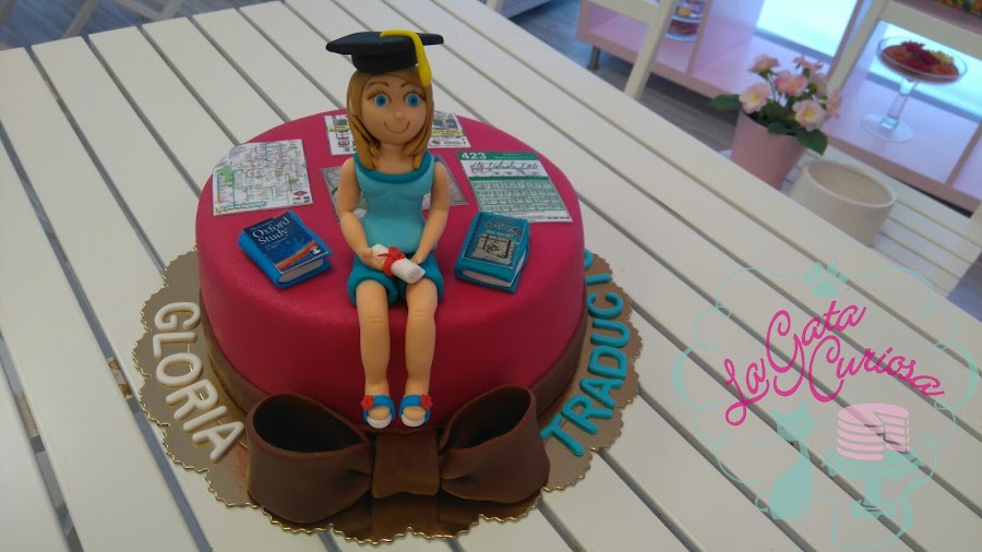 Un plano de del metro de Madrid, uno de Aranjuez, ... un diccionario de inglés, un libro y claro no podía faltar ella con su birrete y su diploma, les gustó mucho y a nosotras también hacerla.