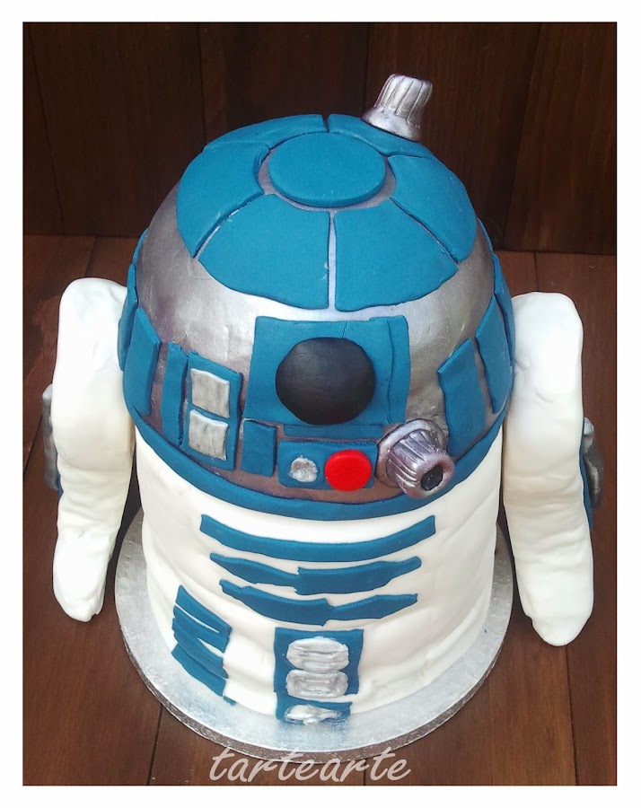 Se me ocurrió para su cumple hacerle una tarta de ?Star Wars?, porque le encantan todas las películas, y me dije: ?que mejor tema que este?. Así que pensando qué podía hacer, se me ocurrió hacerle una mini-tarta de R2D2 en 3D (es de mis personajes favoritos junto a Joda jaja), y así probar a hacer algo diferente para mí.