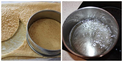 Hacemos el bizcocho como dice la receta. lo dejamos enfriar y cortamos dos circulos tomando como molde el que usaremos para montar la tarta.