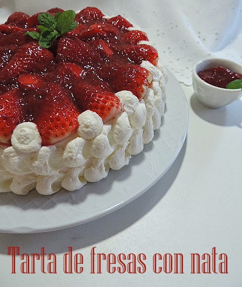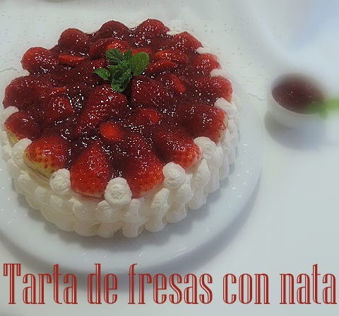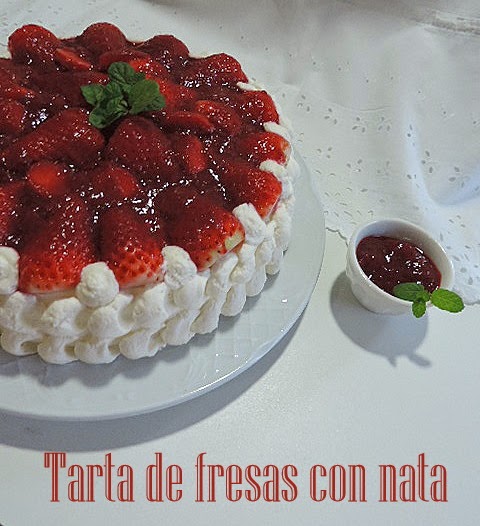 Entre Monas de Pascua y Panquemado se me ha colado esta refrescante Tarta de fresas con nata (crema de leche).Esta claro que no puedo pasar una semana sin preparar una tarta,no hace falta celebración ninguna para disfrutar de un delicioso bocado.