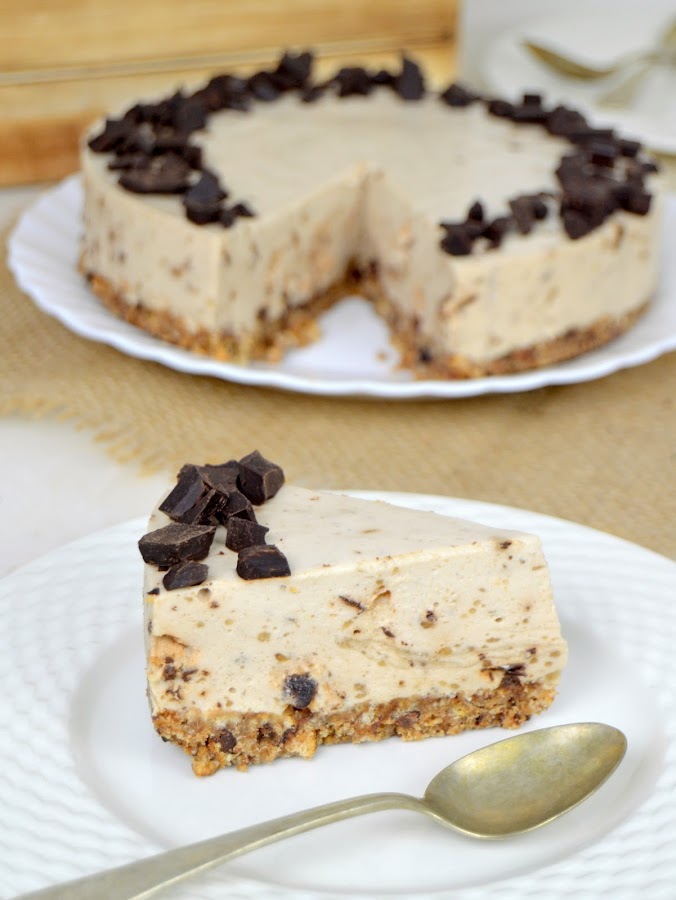 1.- Comenzamos, como siempre preparando la base de galletas. Trituramos las galletas y las mezclamos con la mantequilla fundida. Como estas galletas tienen trocitos de chocolate os recomiendo que las tengais un ratito en la nevera antes e triturarlas para que el chocolate esté durito no se funda, además también que dejeis que la mantequilla fundida que enfrie antes de mezclar con las galletas.