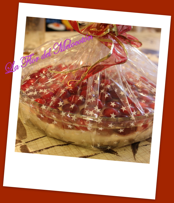 ?Íbamos a comer a casa de unos amigos y mi madre me sugirió que llevase una tarta fría. Como no me gusta hacer dos veces la misma tarta, estuve volviéndome loca hasta que se me ocurrió variar ligeramente una tarta de marialunarillos. La suya era de uvas y moscatel. La mía sería de cerezas y Kirsch. Os dejo los ingredientes y la preparación, porque seguro que si la hacéis os enamora!