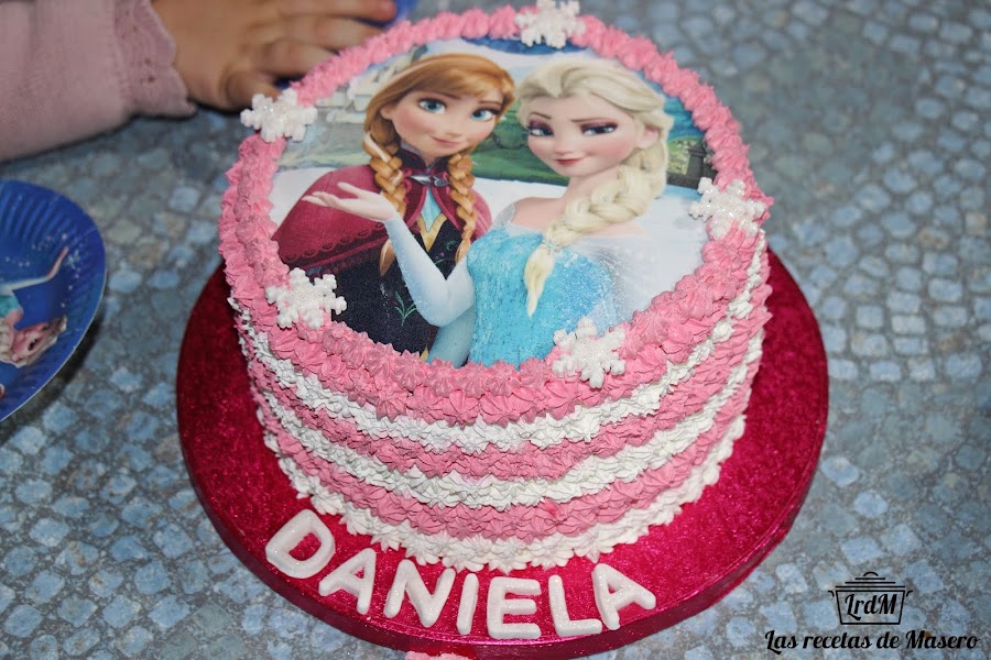 Y ya tenemos lista nuestra tarta, esta nata (crema de leche) permanece estable mucho tiempo y se mantiene firme fuera de la nevera. Es ideal para transportarla y llevarla a los dichosos parque de bolas. Espero que os guste tanto como a Daniela y sus amiguitos.