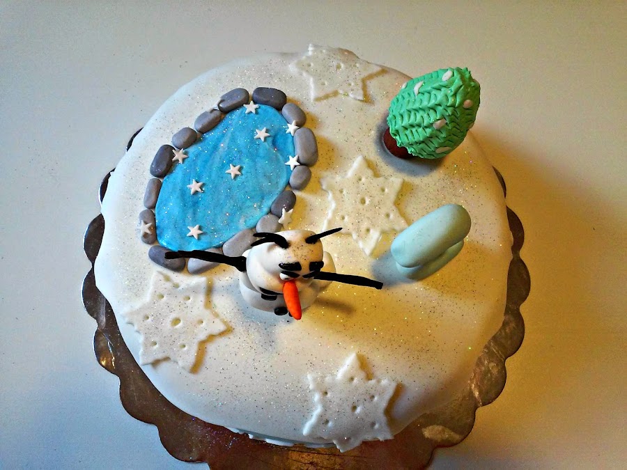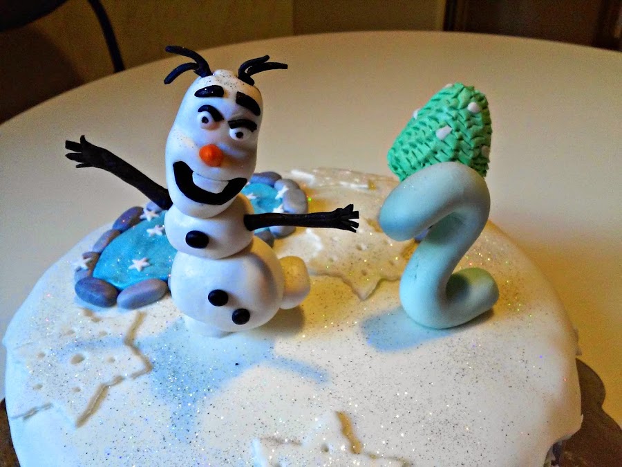 Desde que fuimos a ver la película al cine que se han quedado encantados y todo es Frozen ahora, a todas horas, así que como era obvio la tarta este año para su cumple tenía que ser de ella. El bizcocho es el de yogurt de toda la vida y relleno y cobertura de nata. El Olaf es de fondant, desde luego esto del modelado no es lo mío, pero estaba agotado en todos lados. Espero que os guste. Disfr ...