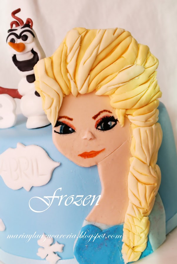 Los tres ingredientes principales de esta tarta son: Una preciosa princesa (Elsa), un reino helado (Arendelle) y el muñeco de nieve más divertido del mundo (Olaf).Con todos estos ingredientes , tenía que hacer una tarta para Abril(que a parte de un mes, es el nombre de esta princesita) una niñita que cumplía 3 añitos y a la que es la 2ª tarta que le hago (esto no te puede hacer sentir mejor, que alguien repita, es sinónim de que la 1ª a gustado....y os aseguro que es muy muy gratificante y alentador, ahí es cuando piensas pues no lo he hecho mal....jejejje