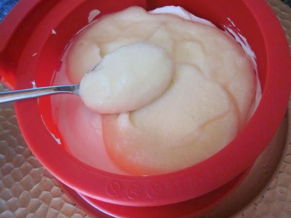 Reservamos y no dejamos de mover de vez en cuando,para que no haga costra, hasta que enfríe y podamos ponerla encima de la nata (crema de leche), esto lo haremos a cucharadas.