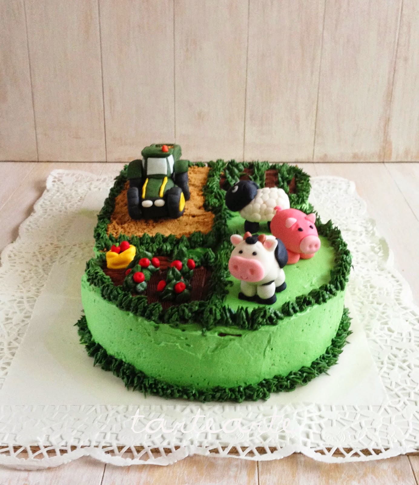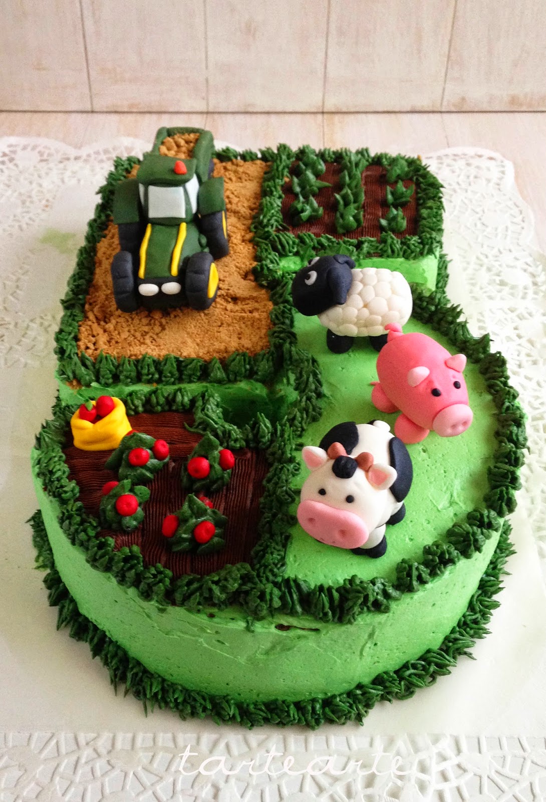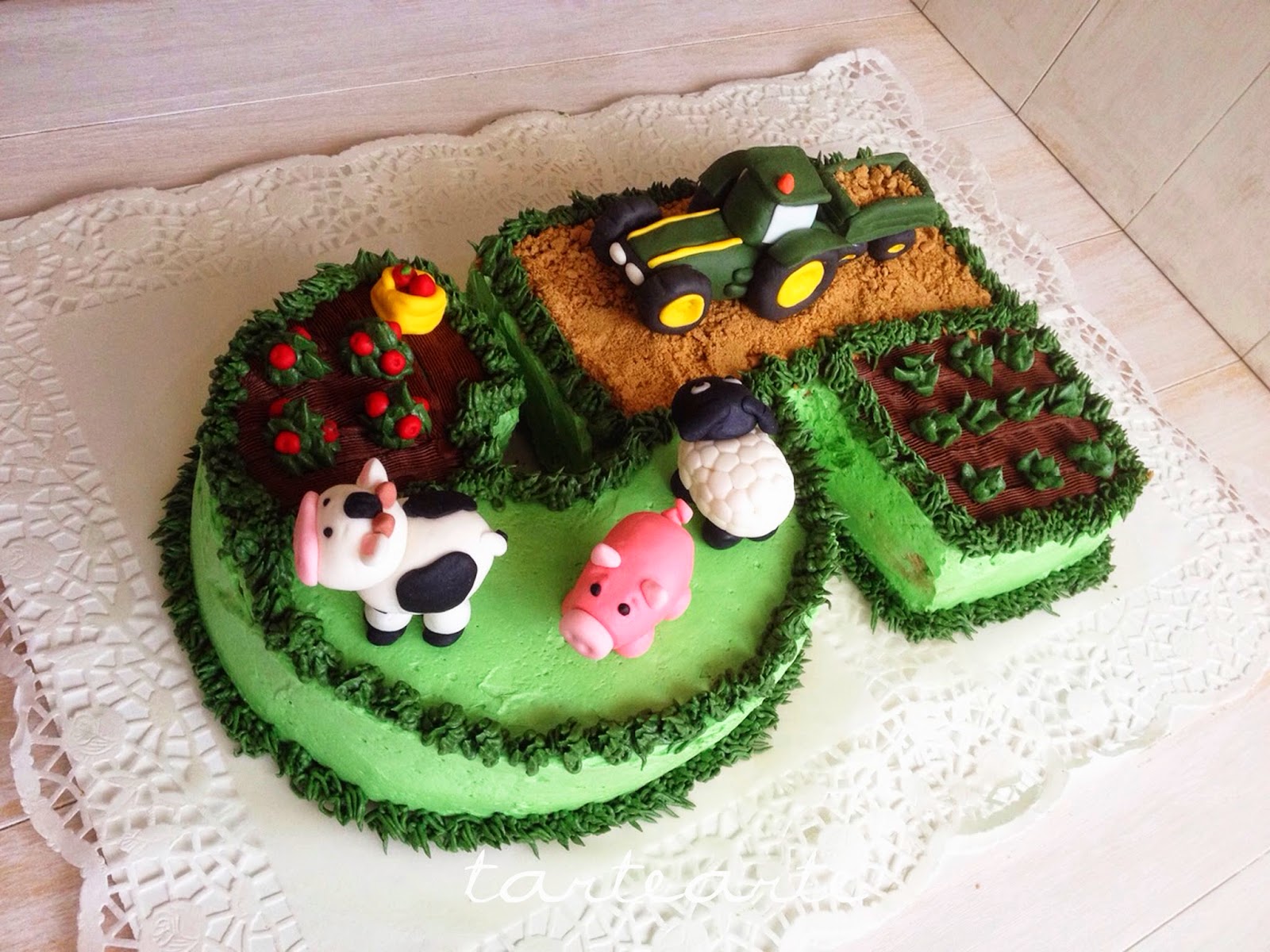 Las decoraciones que es como el campo las hice con buttercream de chocolate, las "lechugas y las tomateras" están hechas también con buttercream, menos los tomatitos que son de fondant.