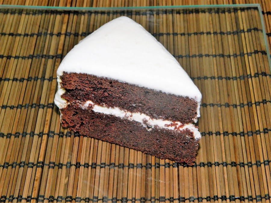 Ahora viene la parte un poco mas complicada, empezaremos cortando un poco la superficie del bizcocho para intentar igualarlo, y luego lo partiremos por la mitad, para tener dos capas de bizcocho. Una vez cortado, extendemos una parte del relleno que ya estará más frio y tendrá mas cuerpo que cuando lo montamos, no lleguéis hasta el borde, dejar medio centímetro sin poner crema, ya que al poner la otra parte del bizcocho es expandirá hasta el borde. Y repetimos la operación, esta vez con la cobertura, ahora nosotros decidimos si queremos que cubra los laterales o no, yo los he cubierto porque me sobraba mezcla, y es una pena tirarla, pero también tenemos la opción de repartirla toda sobre la cubierta.