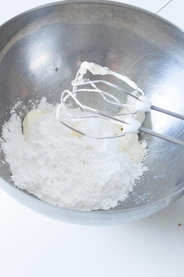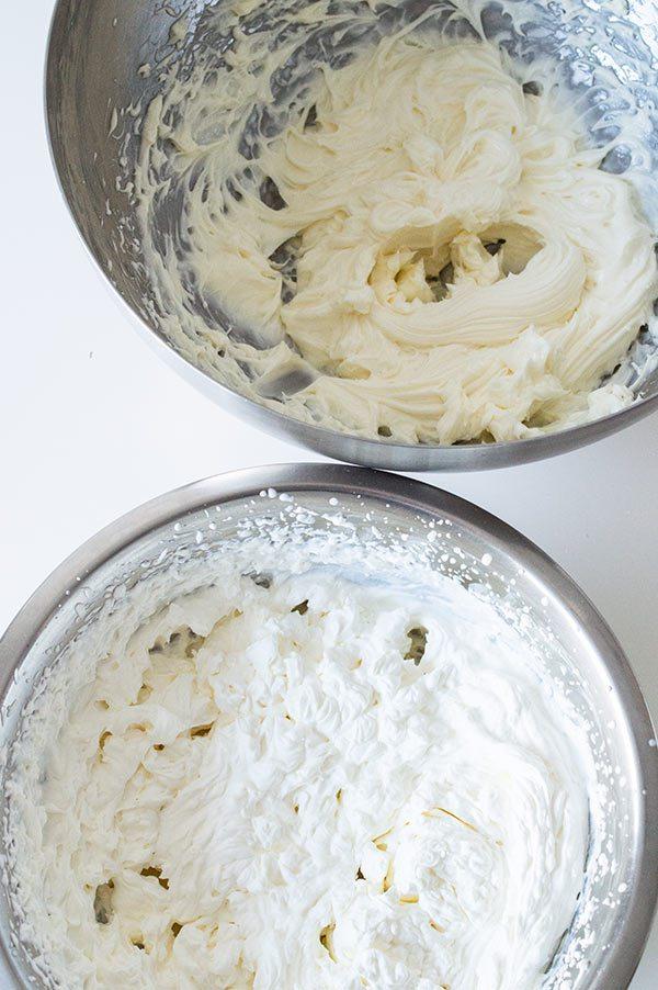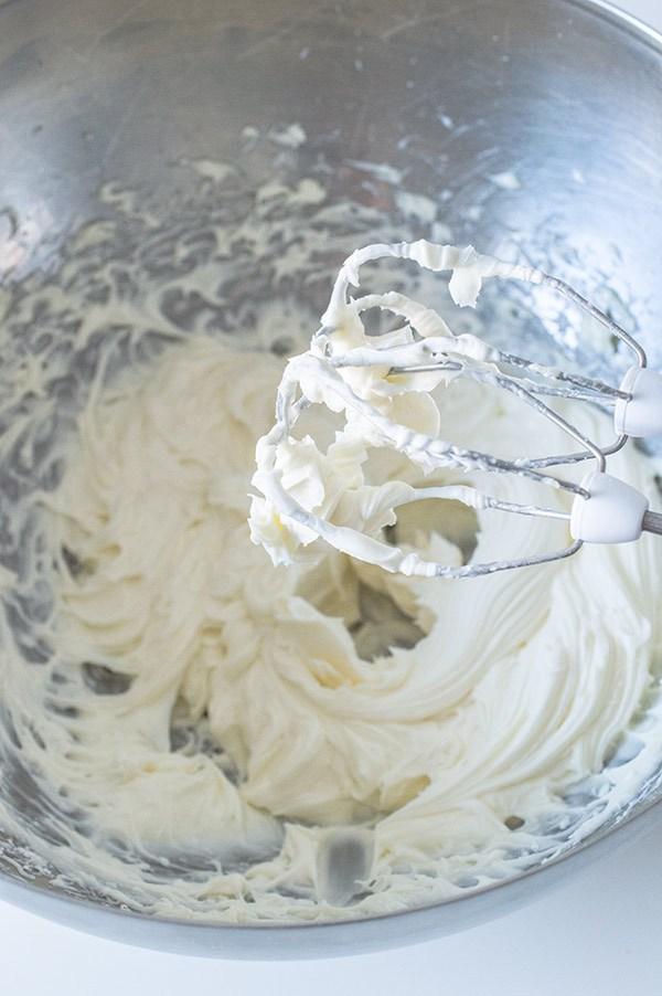 Para el frosting o crema de queso, en un bol, con la ayuda de unas varillas (la mejor inversión en cocina que he hecho nunca) batimos bien.