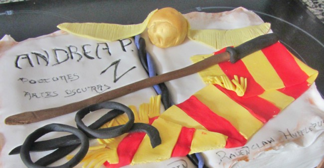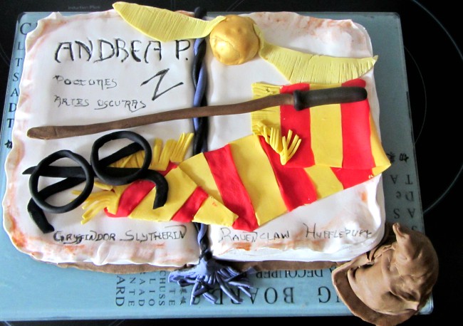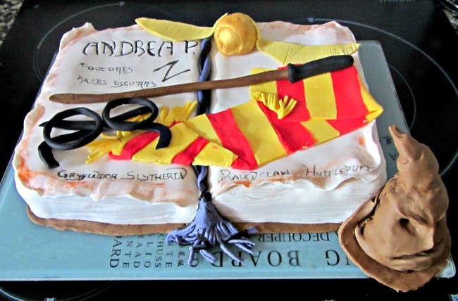 ¡¡¡Perfecto!!! porque me he visto todas las películas. Incluso algunas de ellas las he visto varias veces… Y es que mi hija mayor, Andrea, durante un tiempo, se dedicó a aprender TODO (y cuando digo Todo, es TODO) lo referente a esta saga… se aprendió hasta el árbol genealógico de los personajes. Por eso, cuando tuve que hacer una tarta para su 13 cumpleaños, no se me ocurrió mejor idea que hacer un tarta temática de Harry Potter. Y eso es lo que aquí os traigo. Si queréis ver lo que han hecho mis compas de reto inspirándose en Harry Potter, pincha AQUÍ. No os lo perdais.