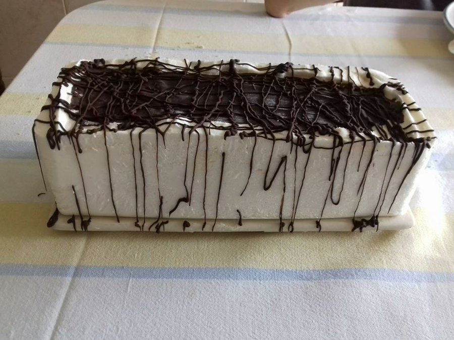 Cogemos nuestro molde de plumcake , ponemos en la base , una capa de la crema que hemos hecho, cogemos una de las laminas de chocolate que tenemos en la nevera, que ya estaran duras, y la colocamos rapidamente encima de la crema , (se despegan perfectamente , las otras continuan en la nevera )
